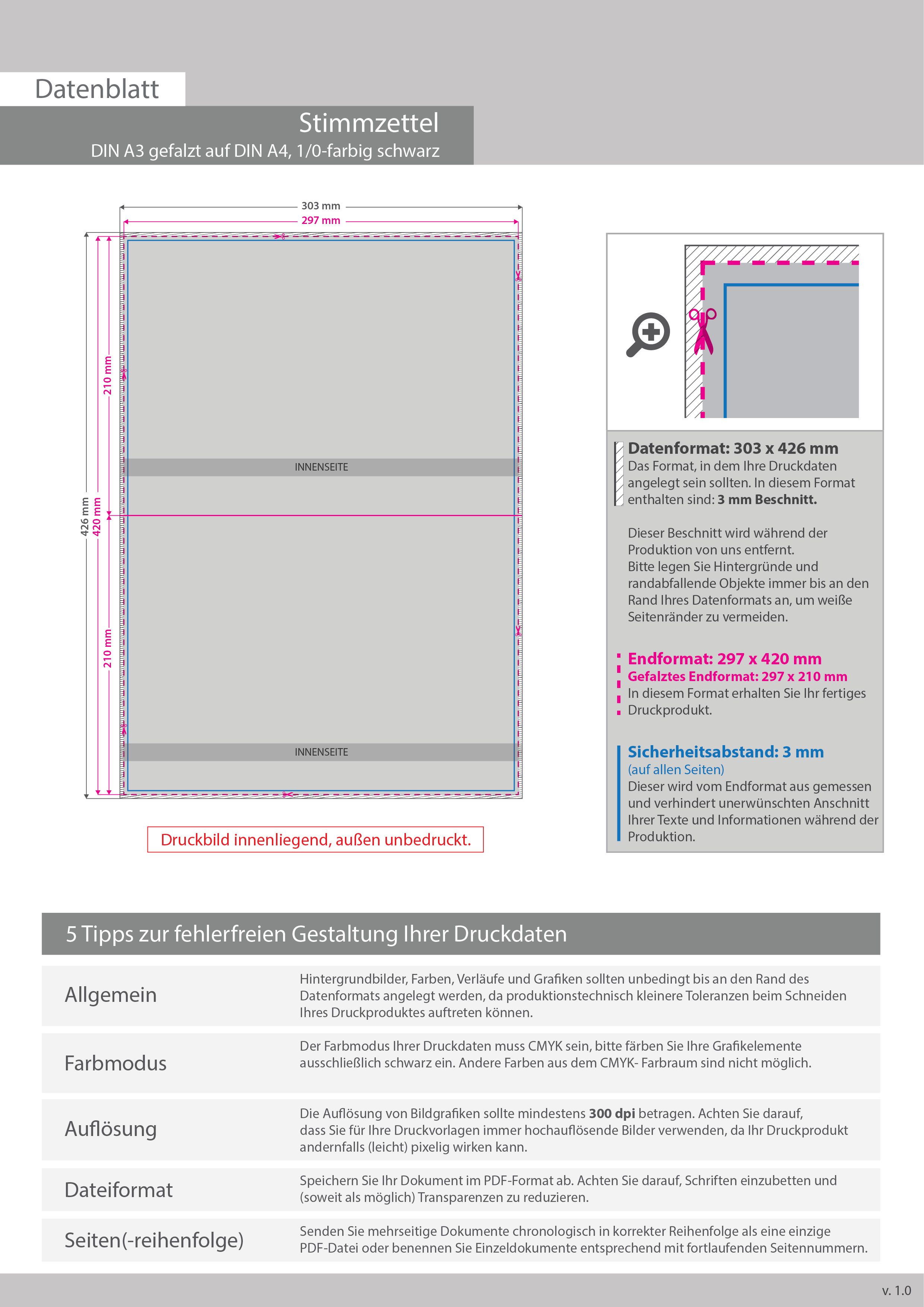 Stimmzettel DIN A3 gefalzt auf DIN A4, 1/0-farbig schwarz (einseitig bedruckt)