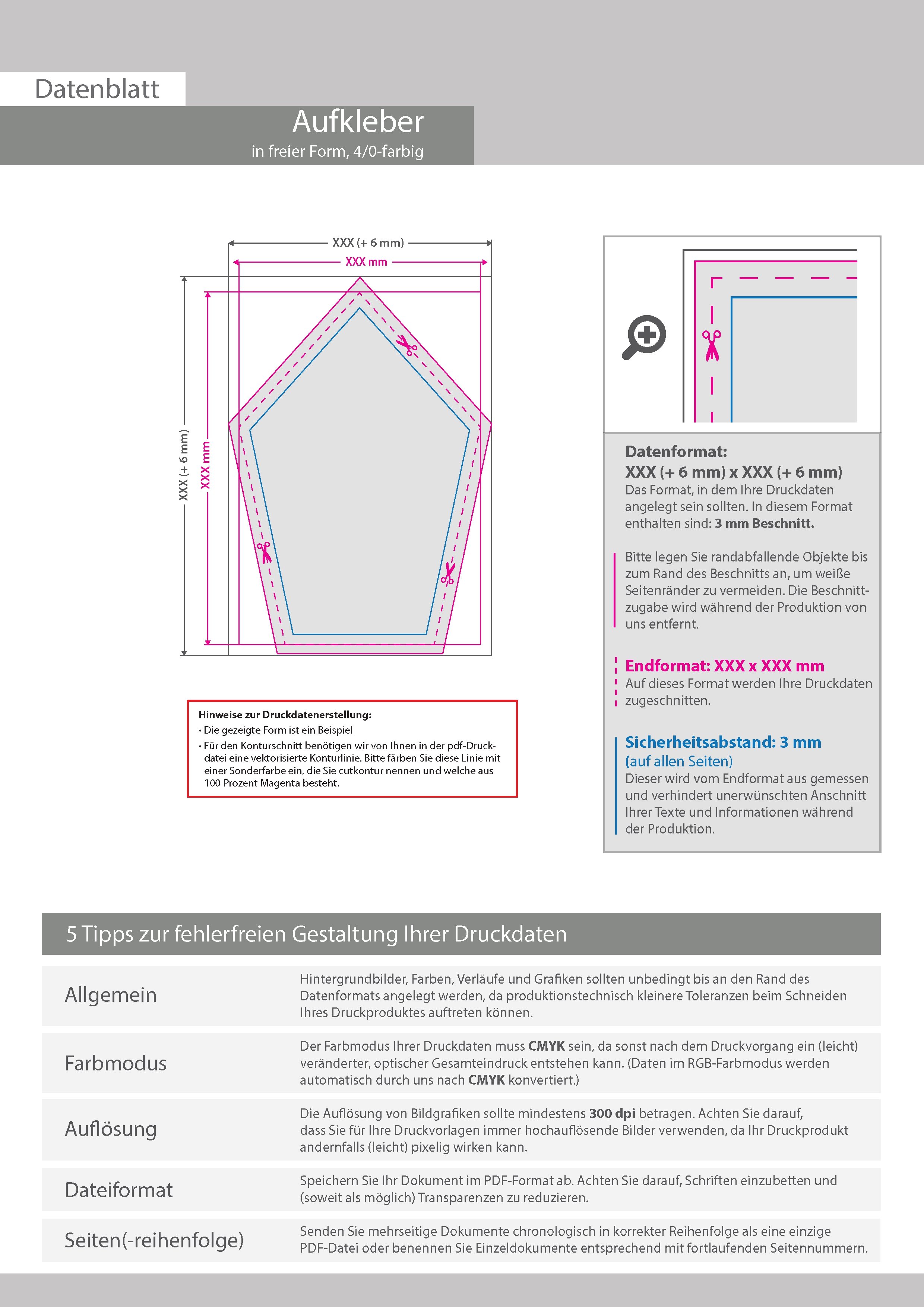 Aufkleber mit Weißdruck 4/0 farbig bedruckt in Frei-Form (eine Stanzform möglich)