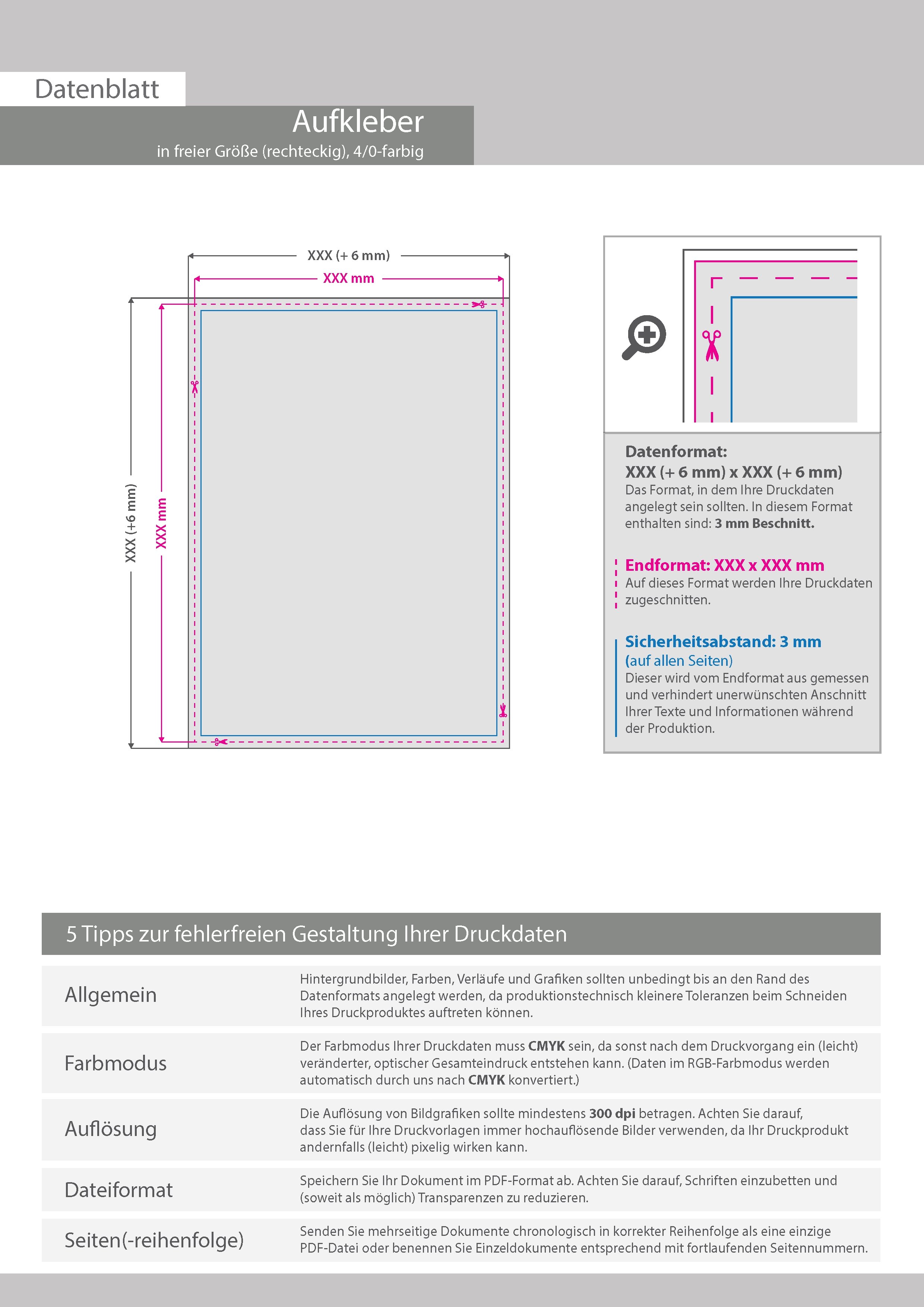 Aufkleber mit Weißdruck 4/0 farbig bedruckt mit freier Größe (rechteckig)