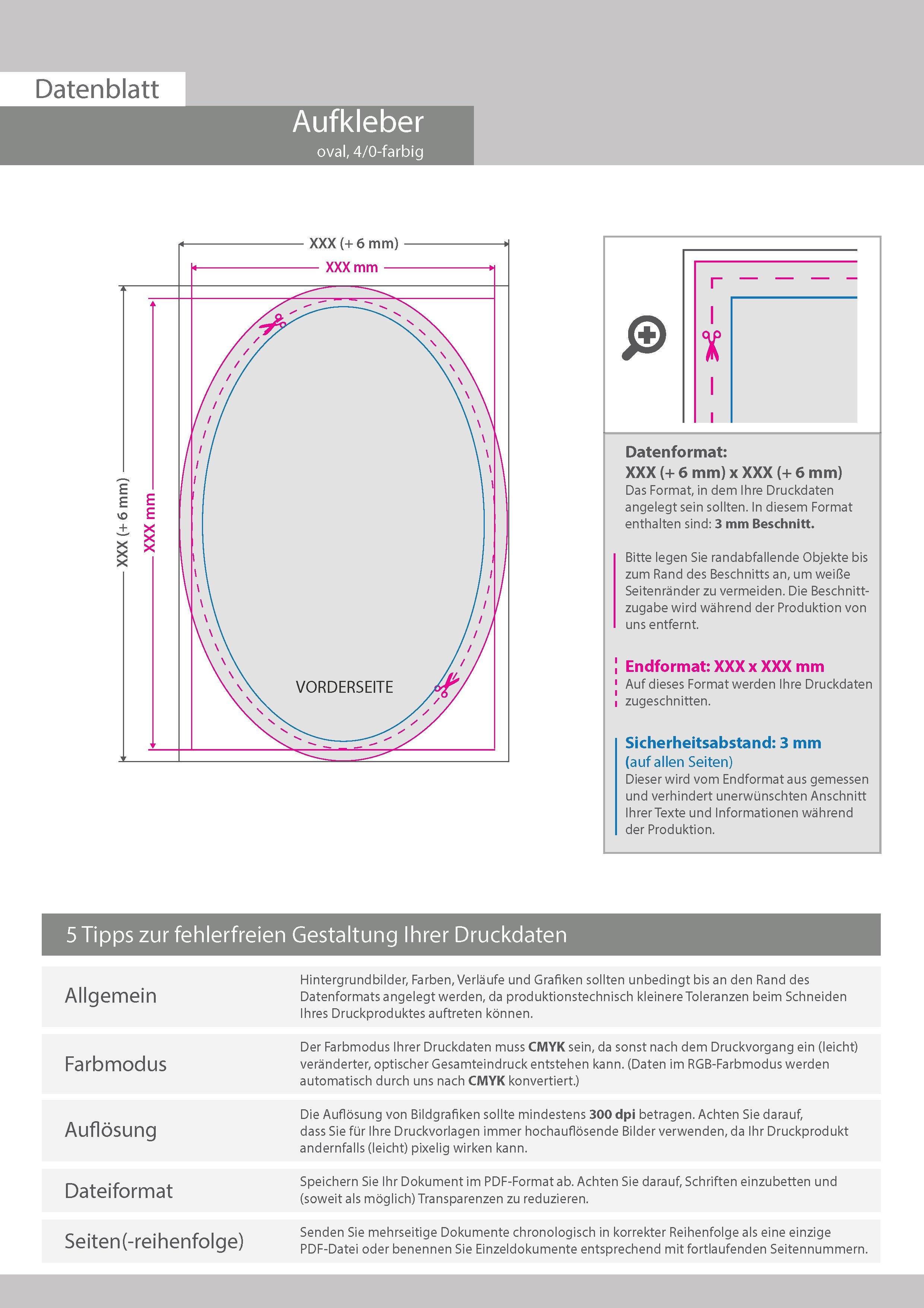 Aufkleber mit Weißdruck 4/0 farbig bedruckt oval (oval konturgeschnitten)